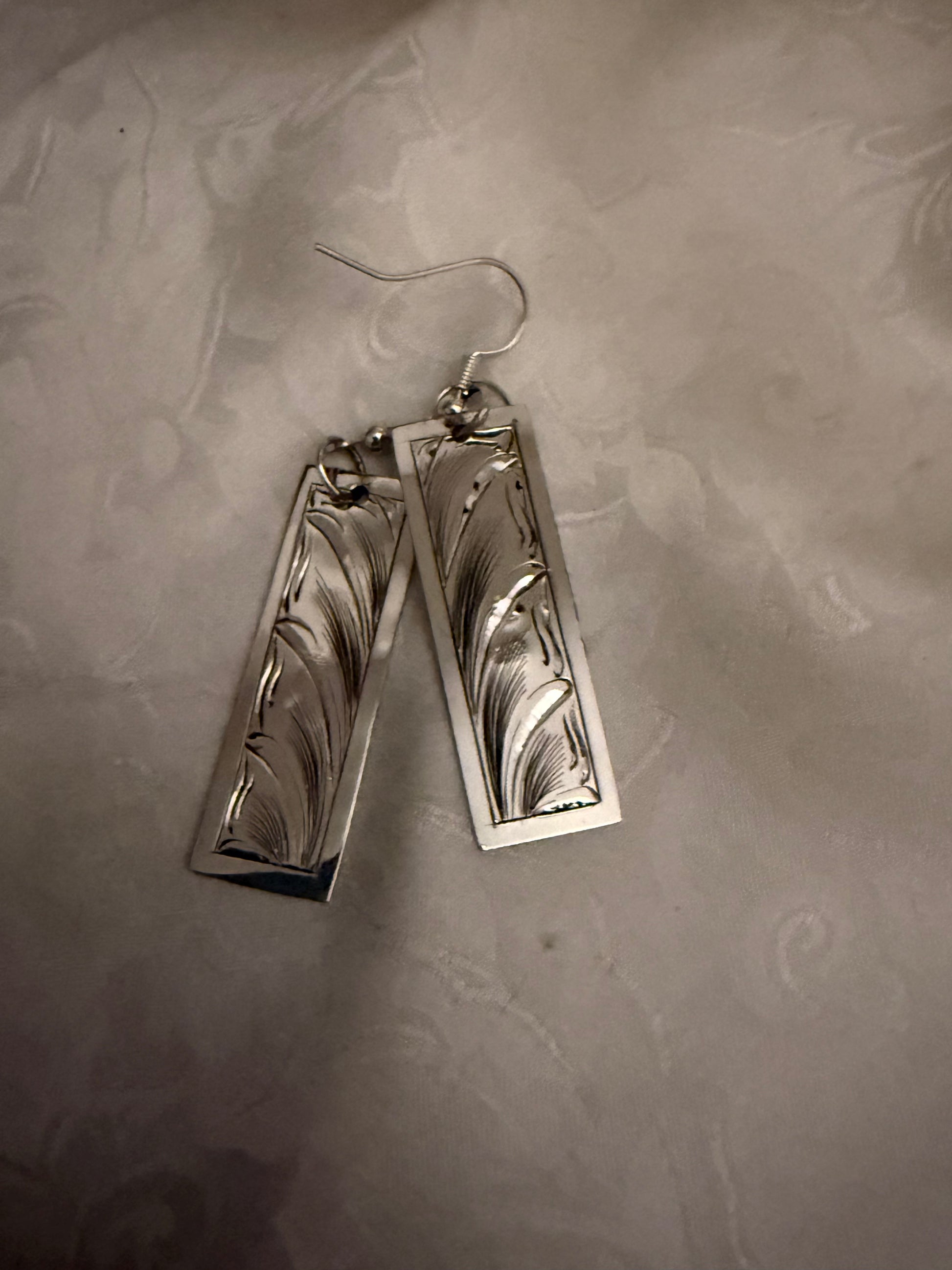 Pretty, punchy, and the perfect dangle. These bar earrings are hand engraved with French ear wires.