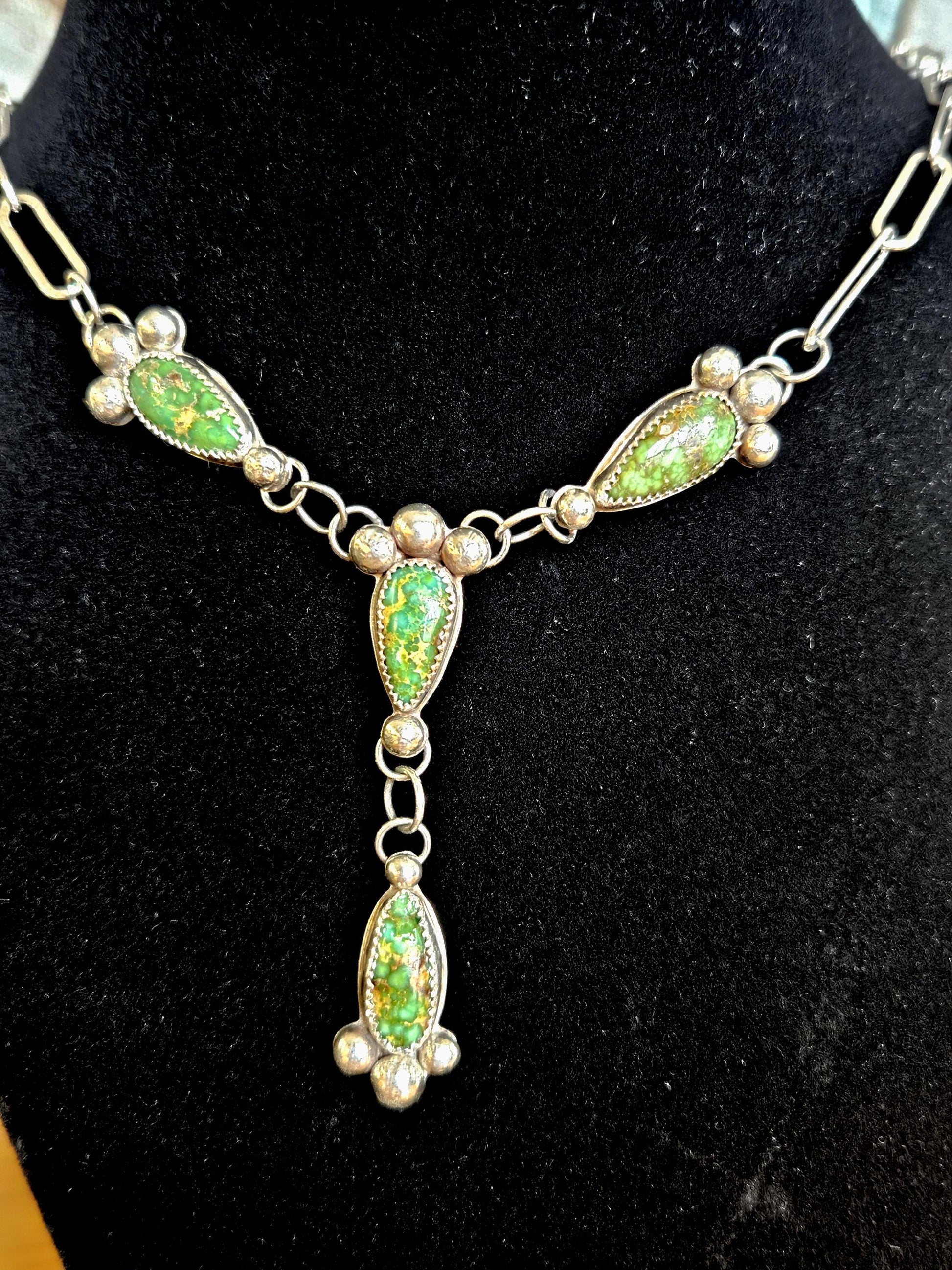 Sonoran Gold Turquoise and Sterling Silver Lariat Necklace
